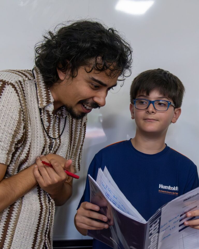 As turmas de 7º ano receberam no Colégio Humboldt o poeta, jornalista e educador André Gravatá.